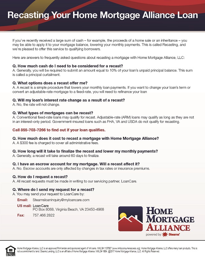 Home Mortgage Alliance) to recast their loans and have saved tens of thousands