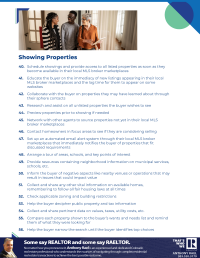 Your REALTOR ® markets your property to other real estate agents and the public. Often, your REALTOR ® can recommend repairs or cosmetic work that will significantly enhance the salability of your property. Your REALTOR ® markets your property to other real estate agents and the public. In many markets across the country, over 50% of real estate sales are cooperative sales; that is, a real estate agent other than yours brings in the buyer. Your REALTOR ® acts as the marketing coordinator, disbursing information about your property to other real estate agents through a Multiple Listing Service or other cooperative marketing networks, open houses for agents, etc. The REALTOR ® Code of Ethics requires REALTORS ® to utilize these cooperative relationships when they benefit their clients.